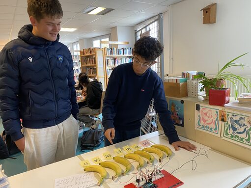 Un circuit électronique, un programme informatique, une partition, des bananes, un peu de réflexion pour comprendre le fonctionnement et les premières notes se font entendre.