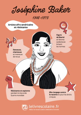 Ce mois-ci découvrez la biographie de Joséphine Baker, artiste afro-américaine devenue icône française. Danseuse, chanteuse et militante, elle a marqué son époque par son audace sur scène, son engagement pendant la Seconde Guerre mondiale, ainsi que son combat contre le racisme et pour les droits civiques.