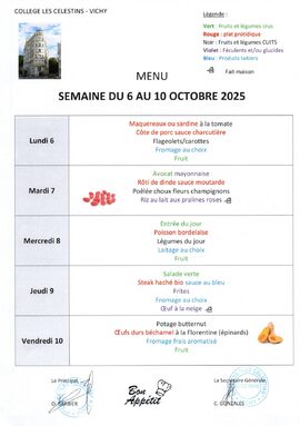 MENU DE LA SEMAINE DU 6 AU 10 OCTOBRE 2025