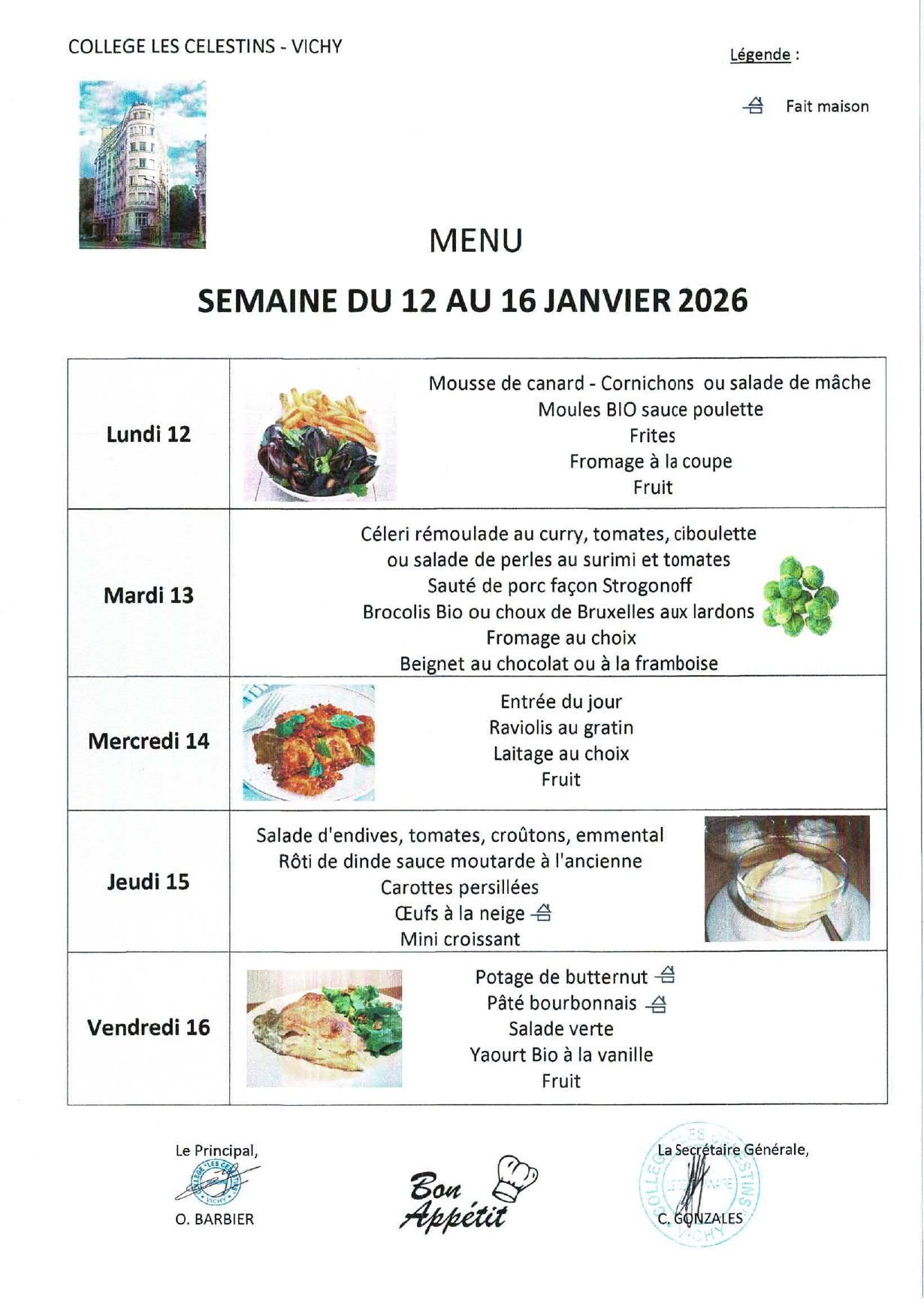 MENU DU 12 AU 16 JANVIER 2026