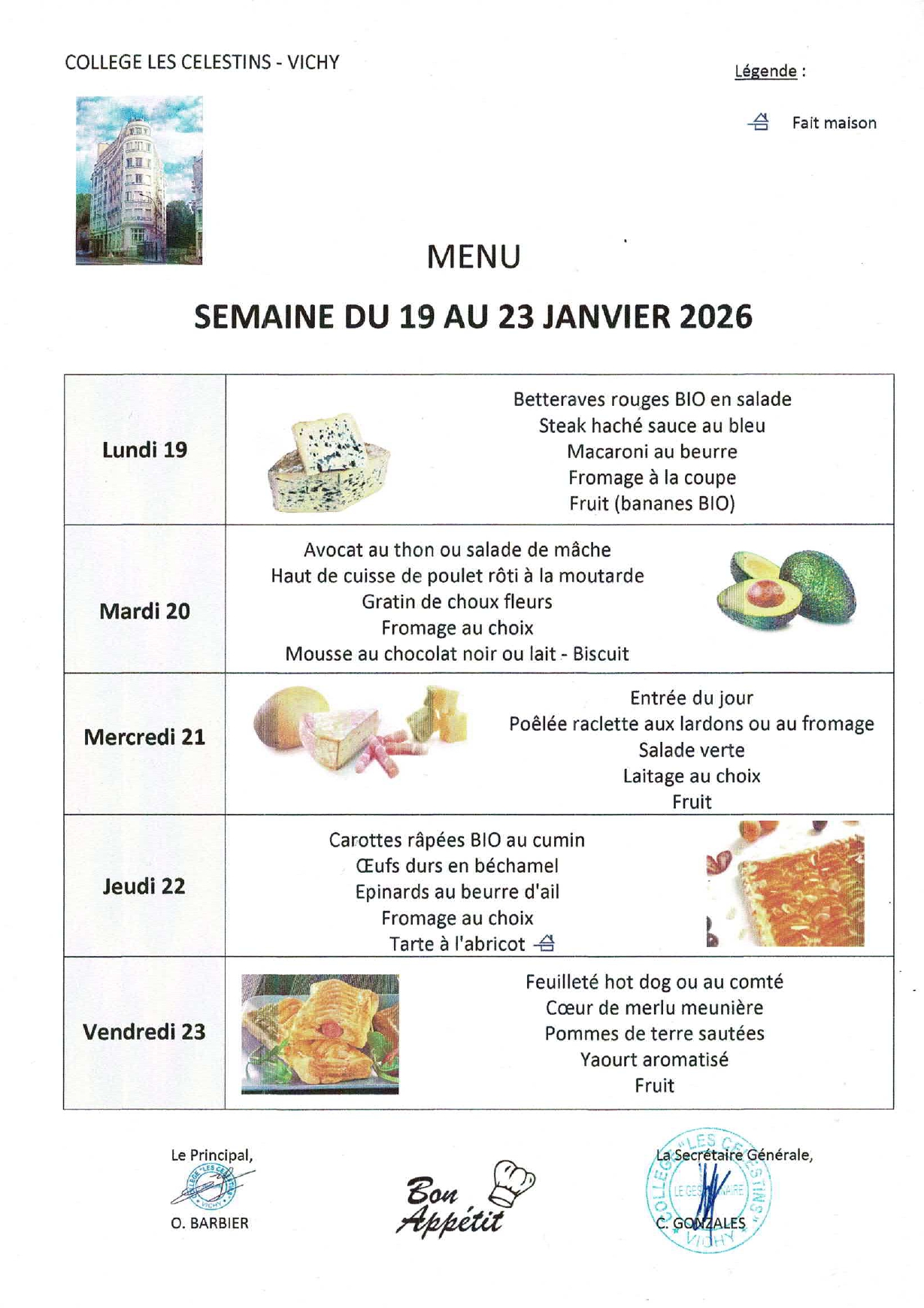 MENU DU 19 AU 23 JANVIER 2026